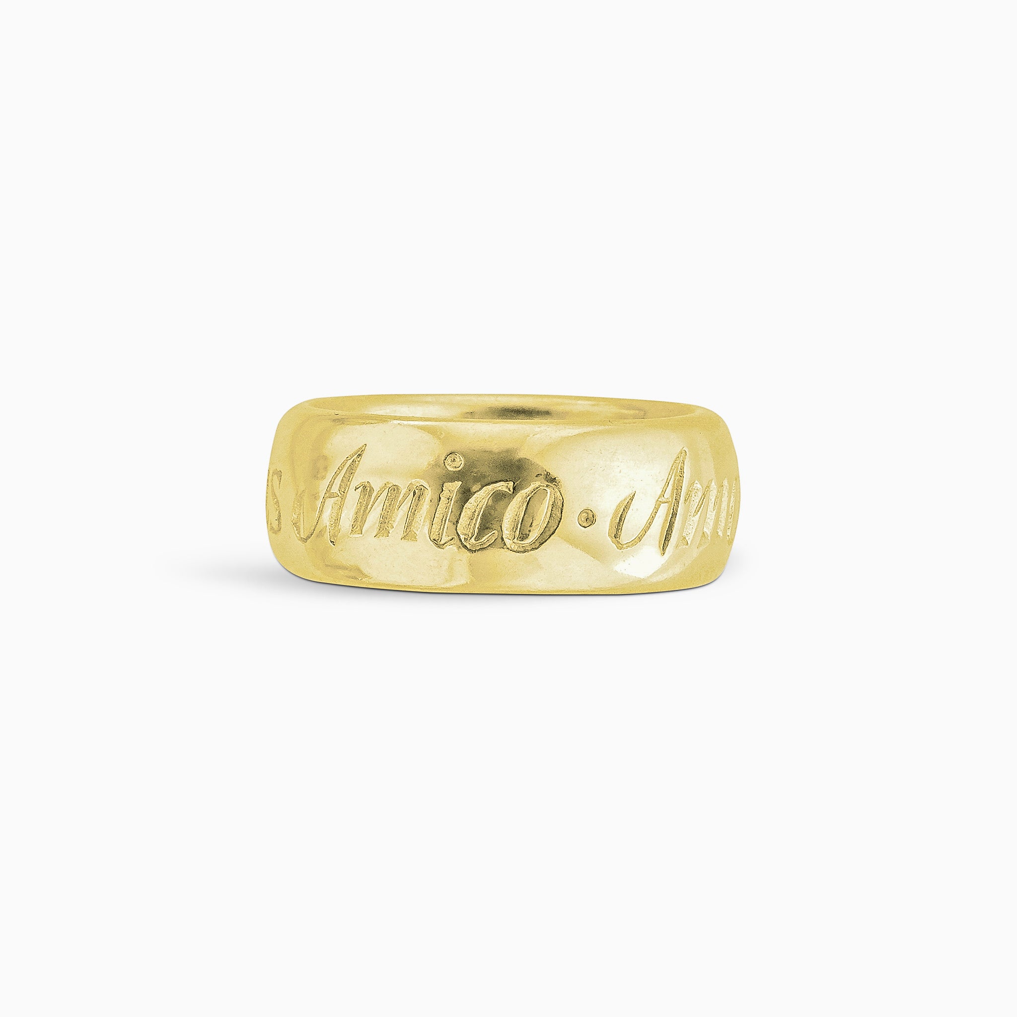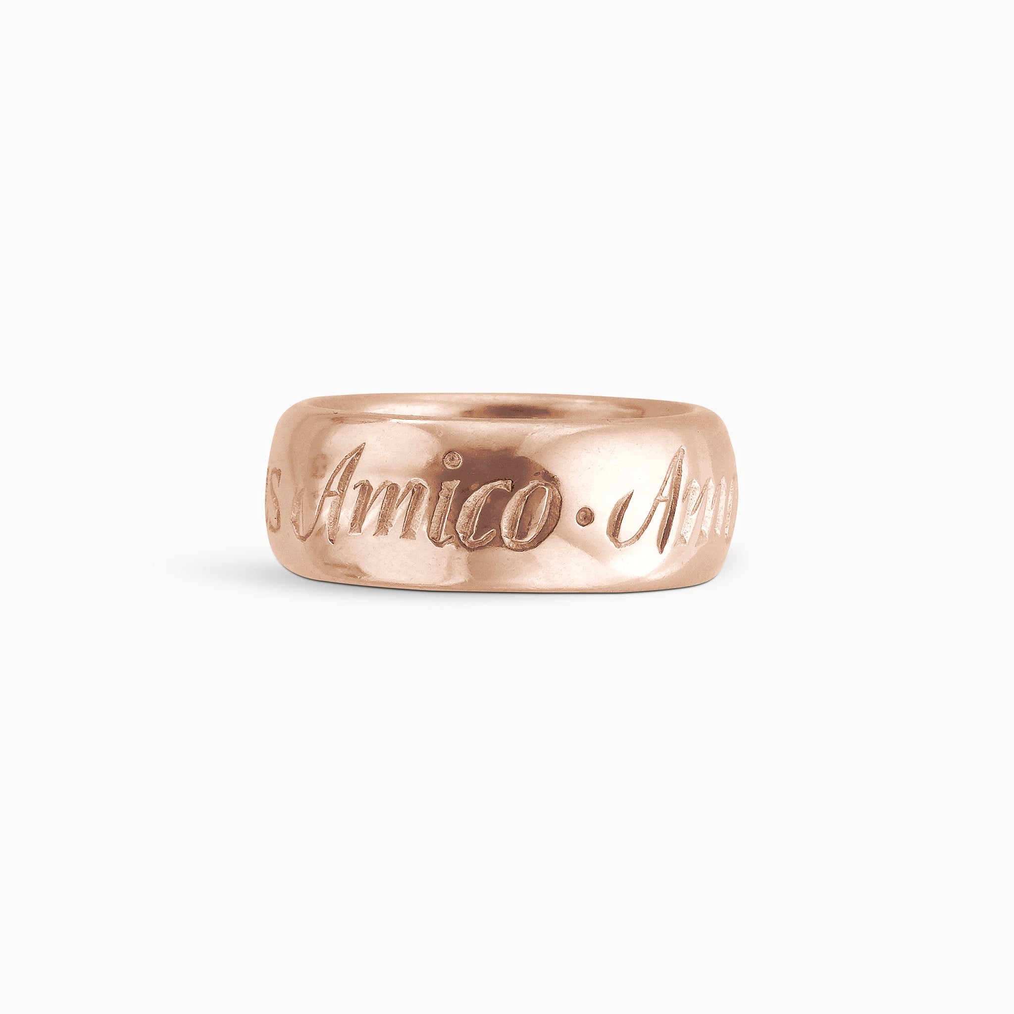 We are fascinated by Latin inscriptions and mottos, handed down across the ages. Here we have revived a classic. “Amicus Amico Amor et Pax.” From one friend to another, Love and Peace. So you can find the person, the reason and the moment.