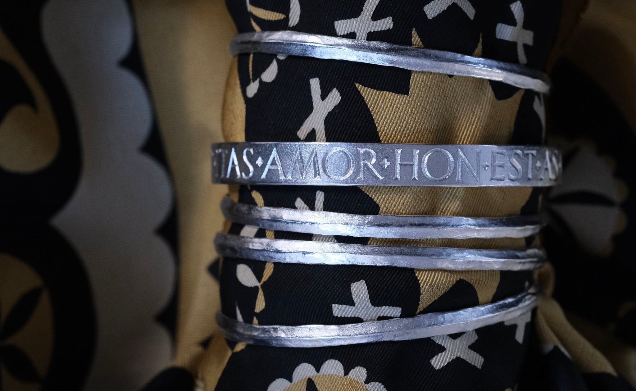 Another goddess. Aphrodite brings love and beauty. Textured and hammered into a delicate ridge. Ultimately wearable and discreetly engraved in Latin with a secret message inside - “Go in peace...”