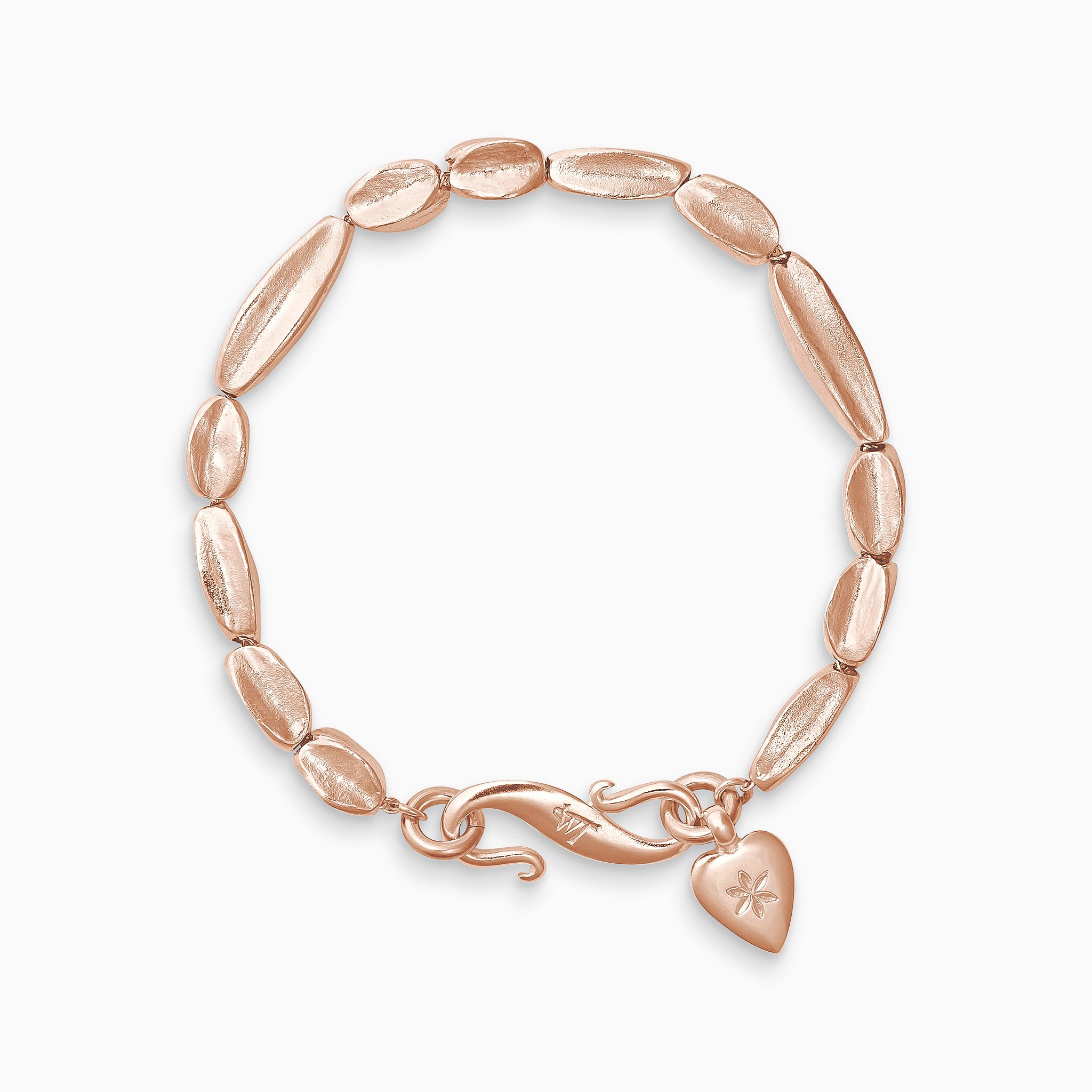 Strong, undulating forms in movement create the Baluba bracelet. Finished with our signature flower heart and Babylon clasp.