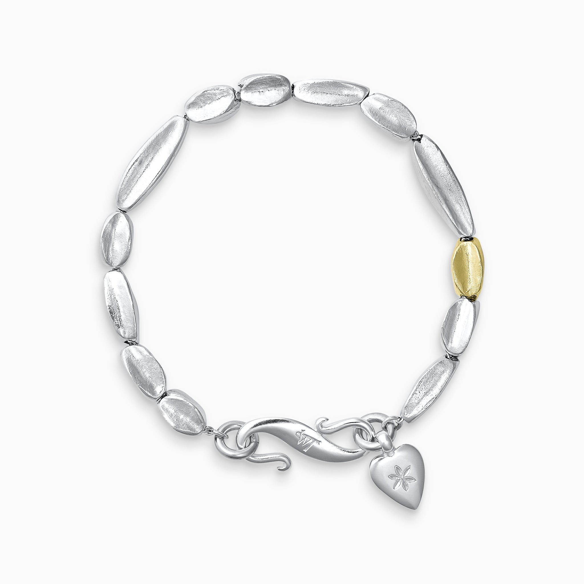 Baluba SOLO bead bracelet: Our soft geometric SOLO beads, flowing over your wrist. But now with one solid gold bead amongst the silver. Fire and Ice.