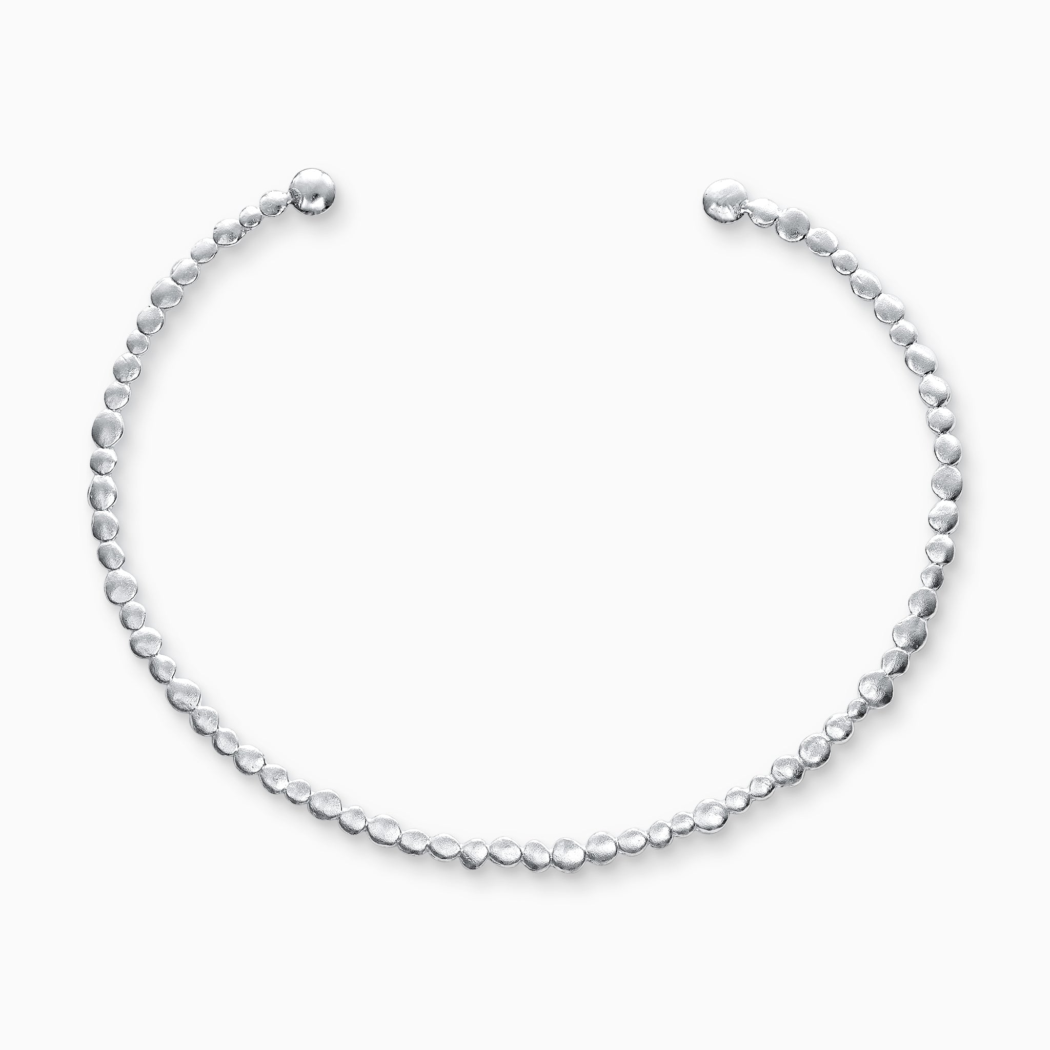 Jewellery collars are a long continuing from of jewellery. Historically they were often worn as an emblem of office for instance by the ancient Egyptians and in Bronze Age Britain. Worn near the collar bone, they frame the face giving shape and authority to the shoulder line and posture, a definite declaration of your presence.