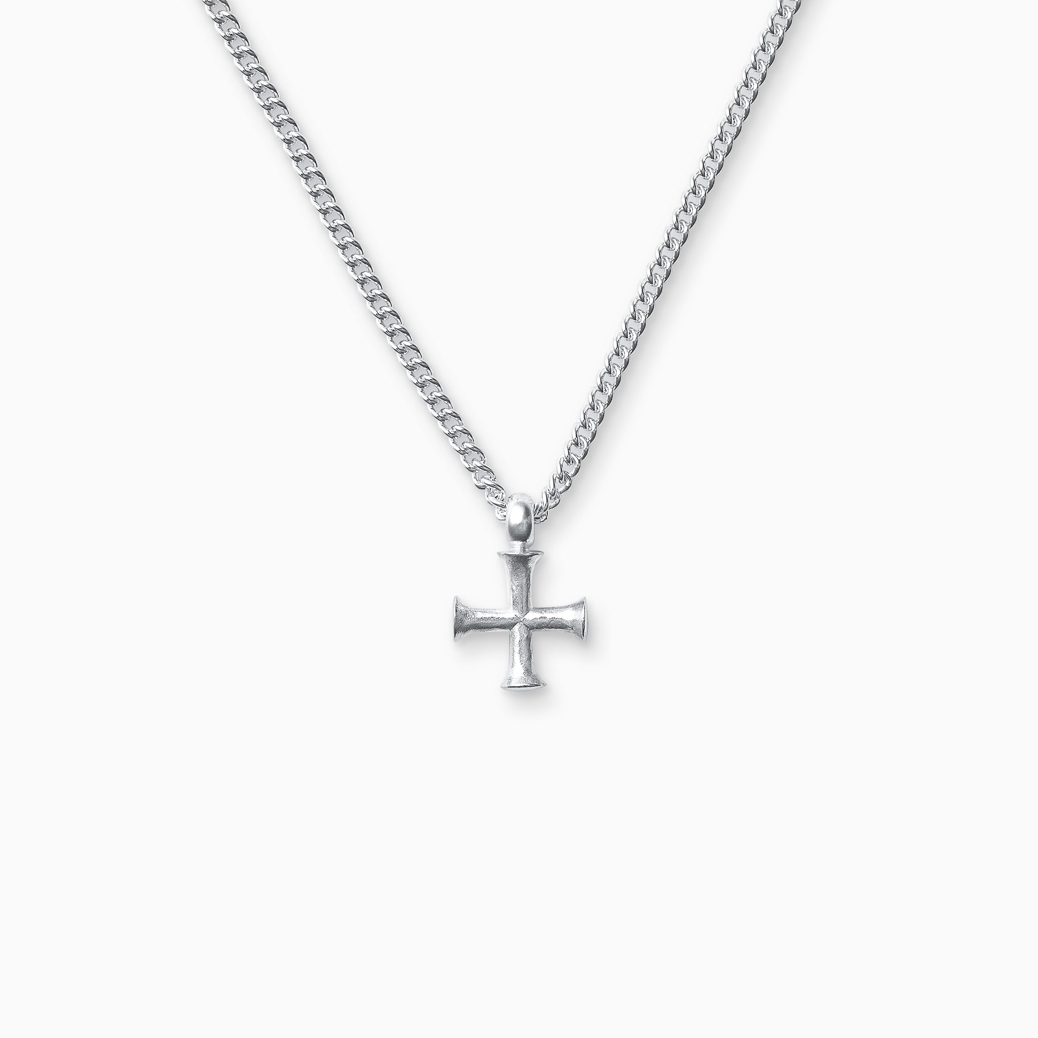 Handmade in London. Cross length 21mm, heavy curb chain length 55cm.