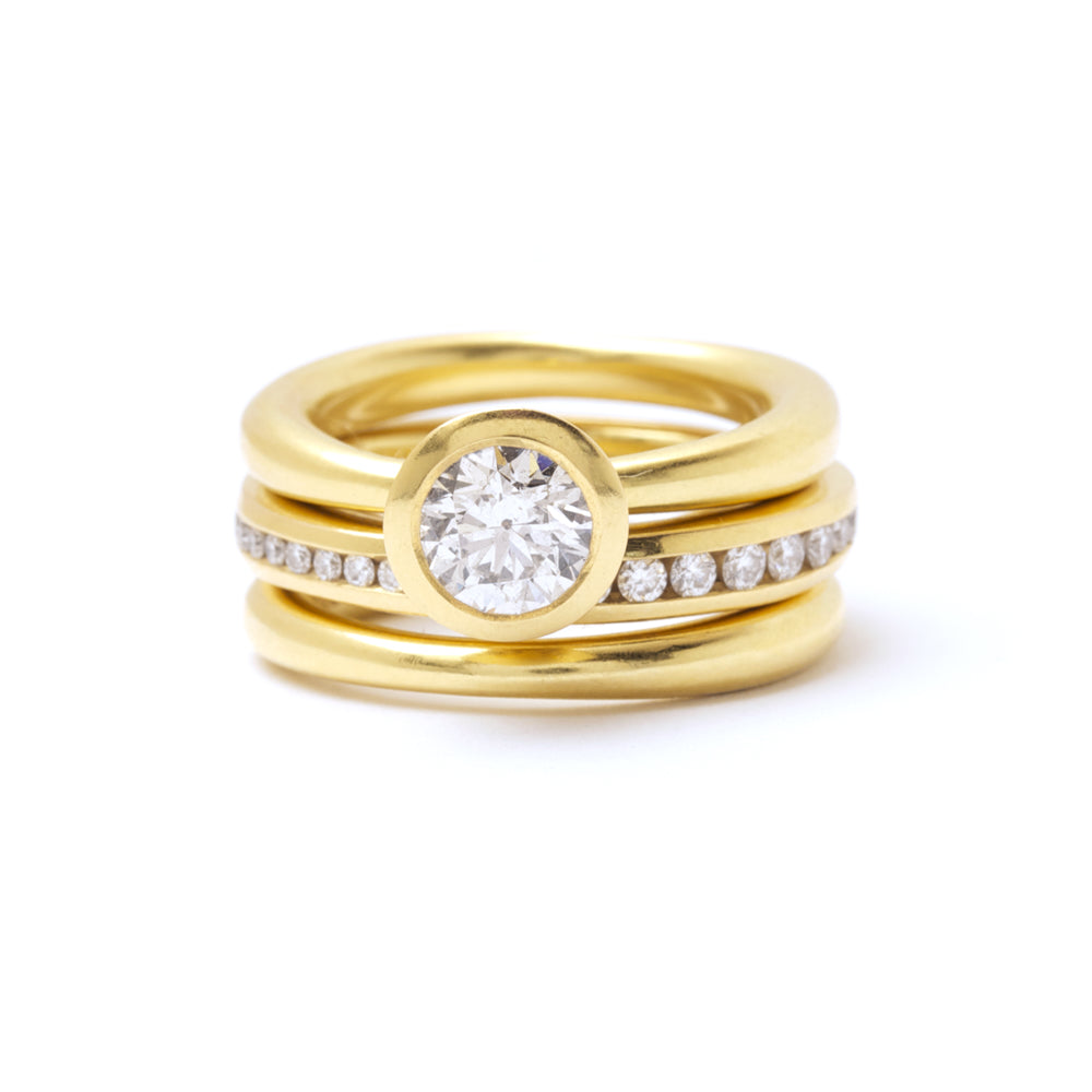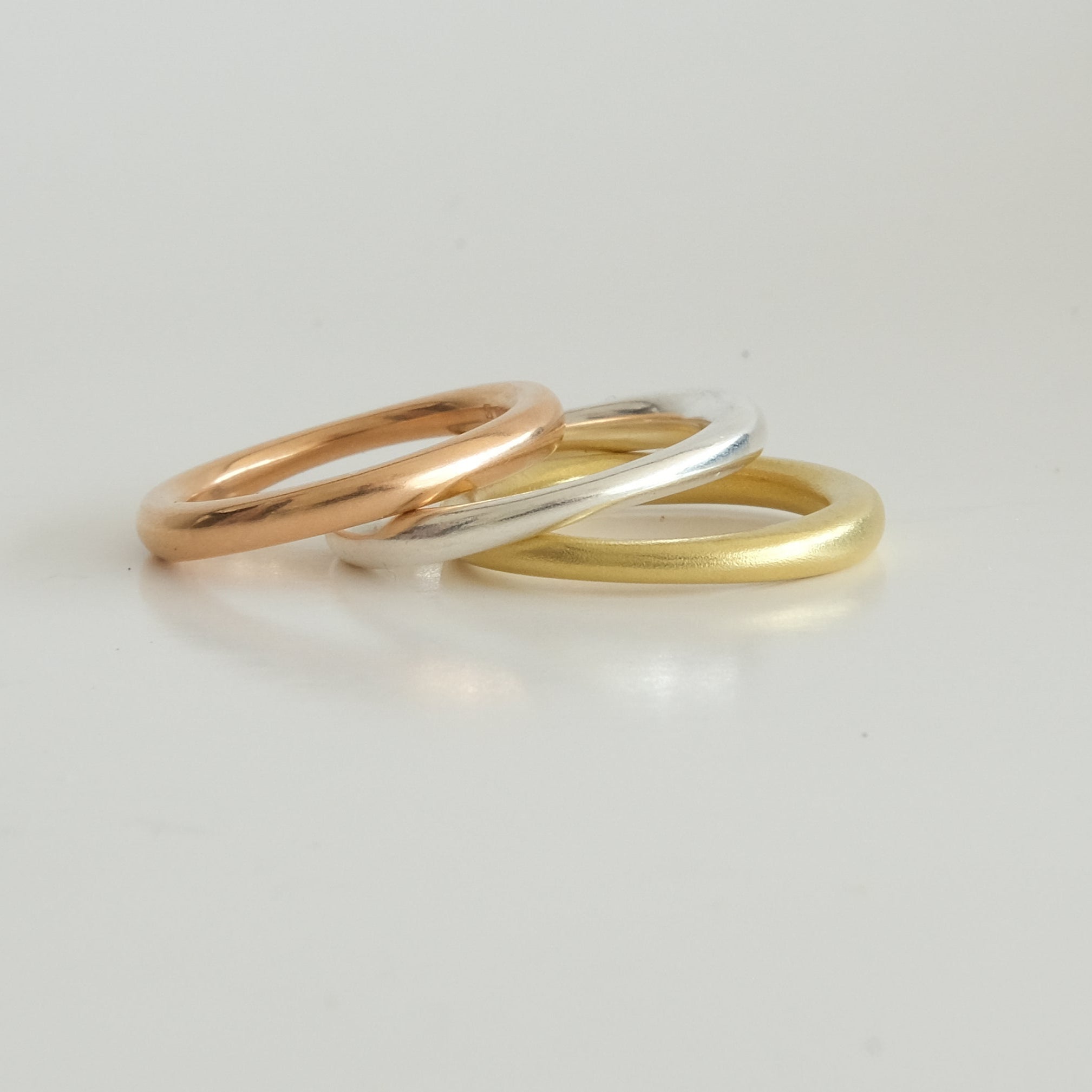 Beautiful singly or as a trilogy stack of precious metals worn together.