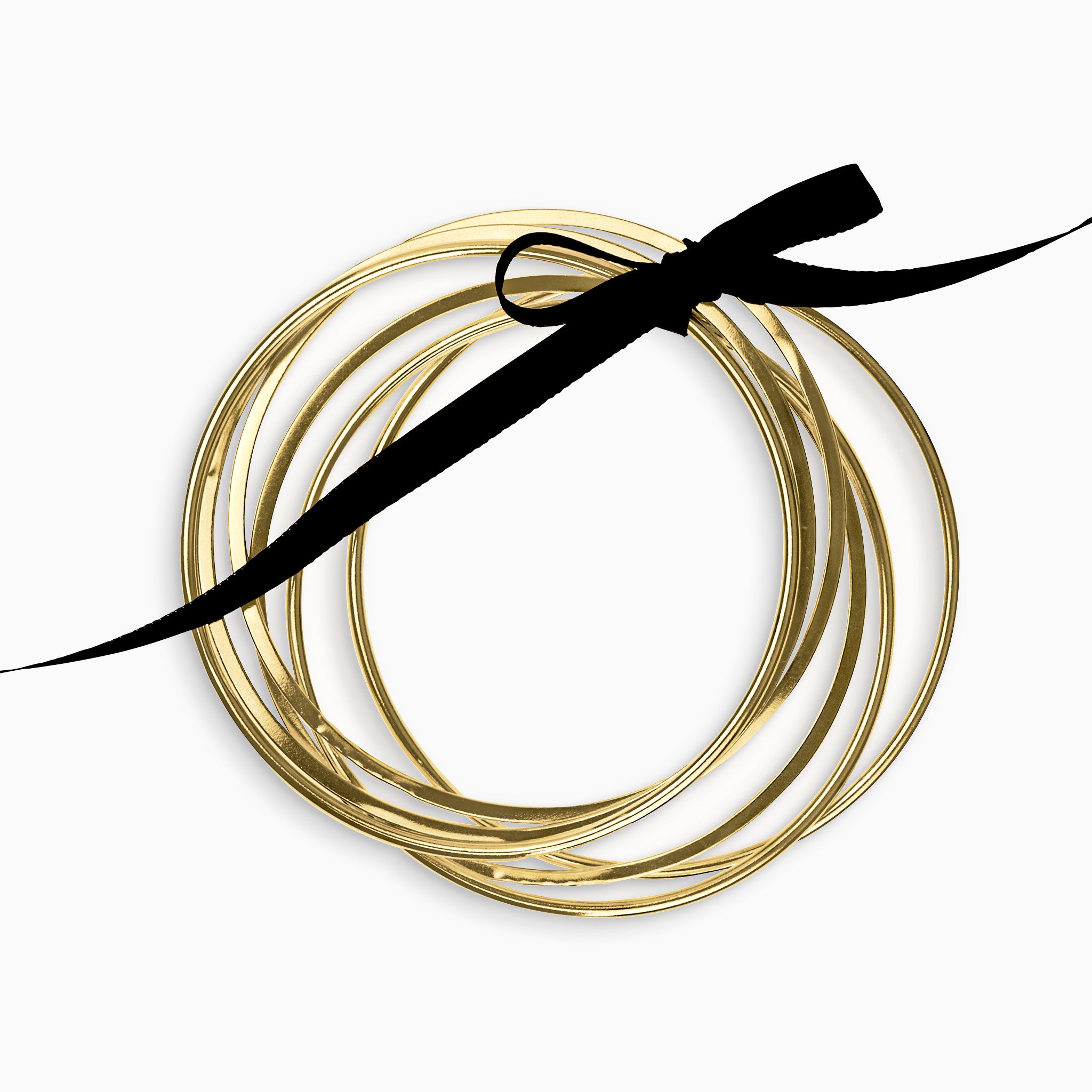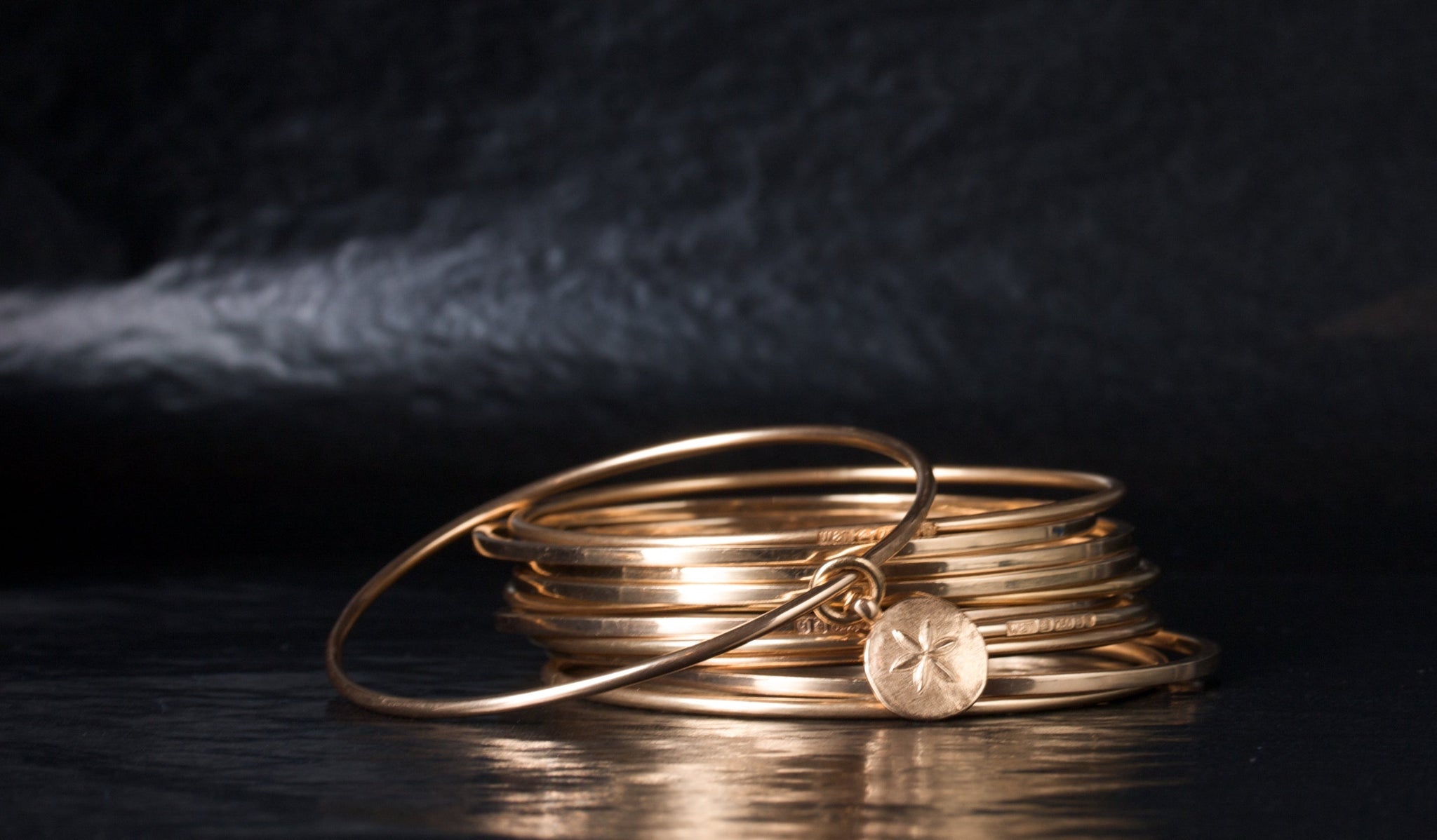 These are an absolute must, often the first piece a collector chooses. Six bangles, three with a square edge and three with a round. Spectacular as the set, subtle when worn singly. Handmade jewels for life. More is definitely more.
