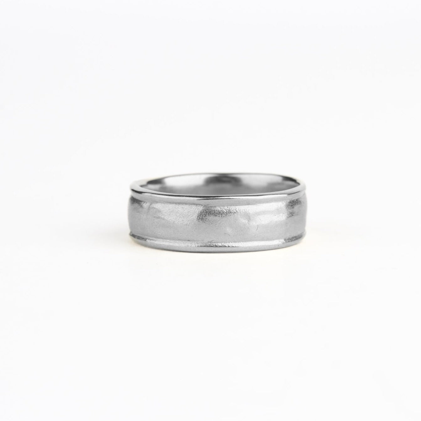 Inspired by the textured surfaces of hewn stone found in ancient Minoan civilisation. This makes a terrific wedding or commitment band, hand made and full of character.