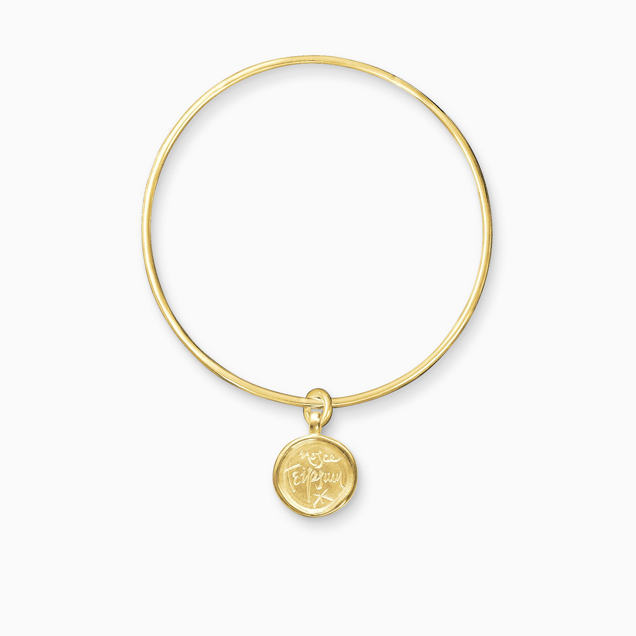 Handmade in London. Charm 15mm diameter, bangle 63mm x 2mm.