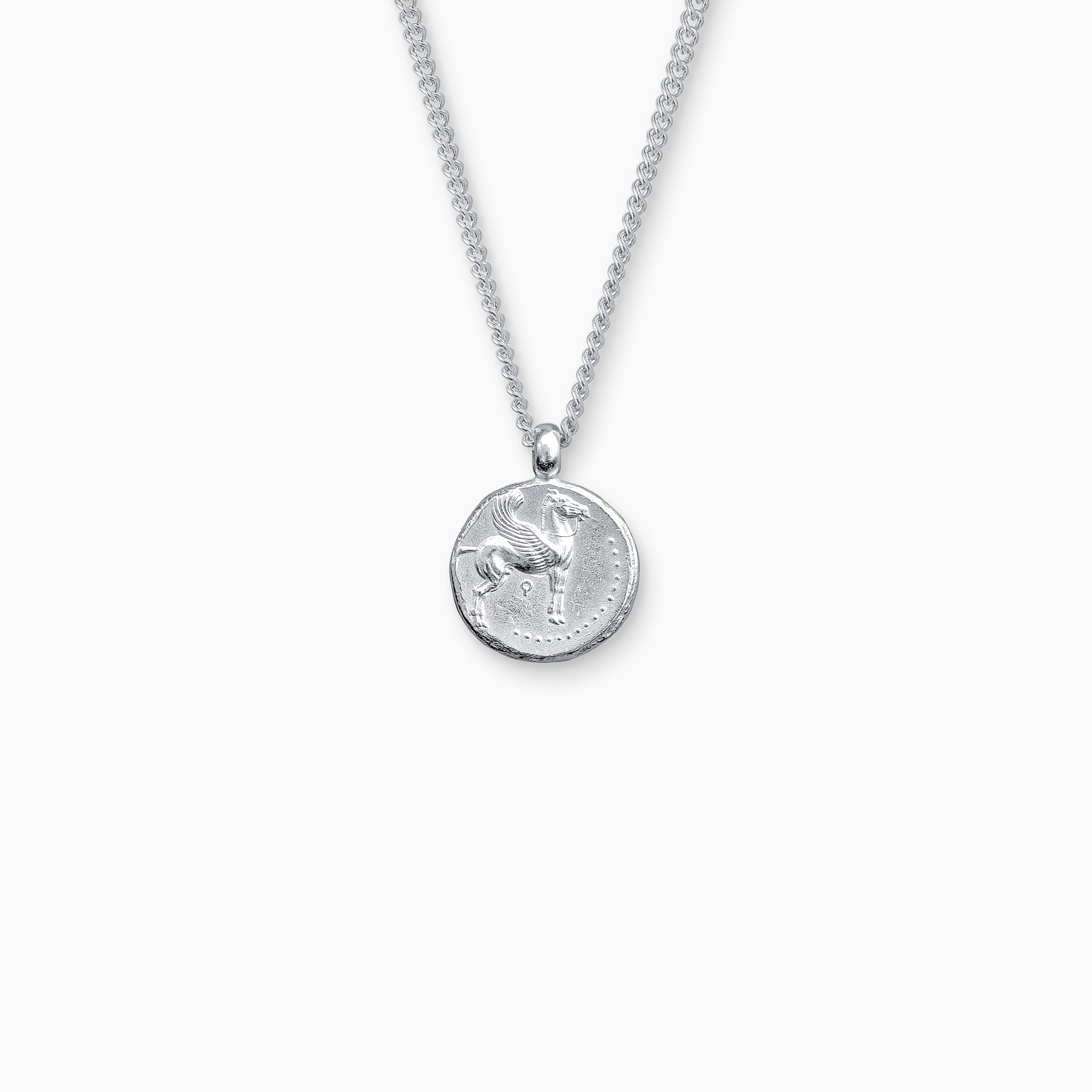 Pegasus pendant length 25mm. Heavy curb chain length 55cm.