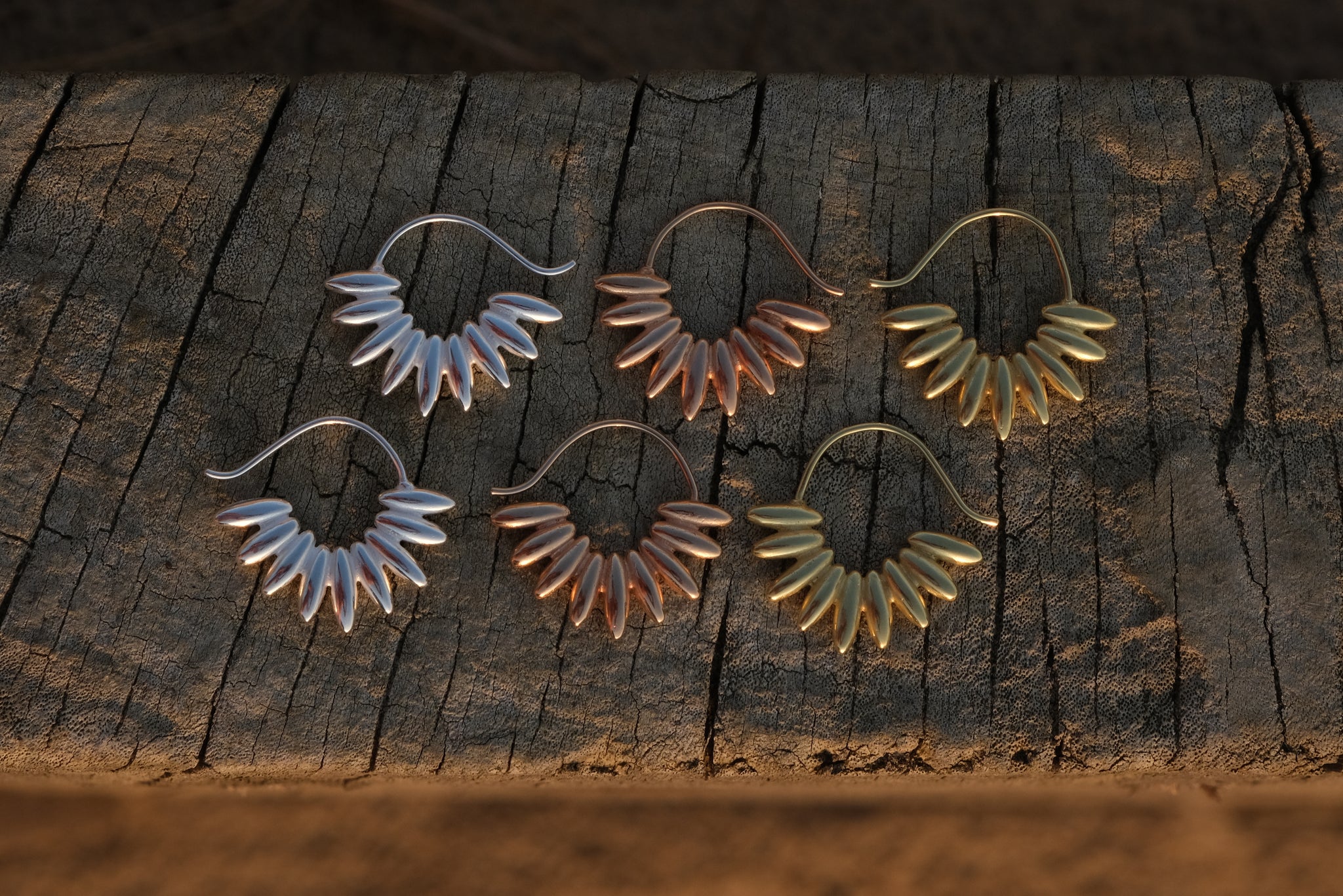 Both a hoop and a drop, these earrings look spectacular in profile. Almost like half a daisy. They love me, they love me not. They love me.