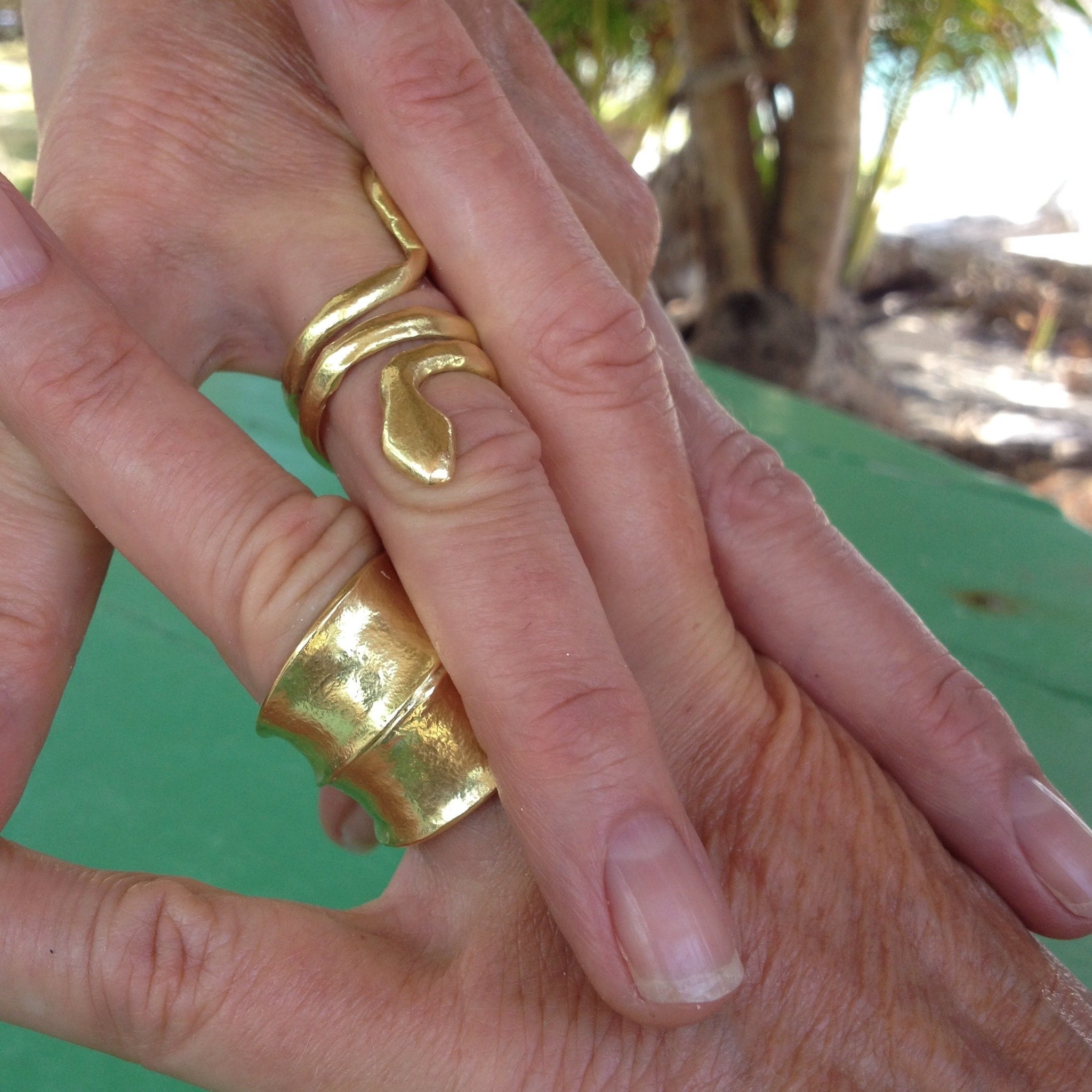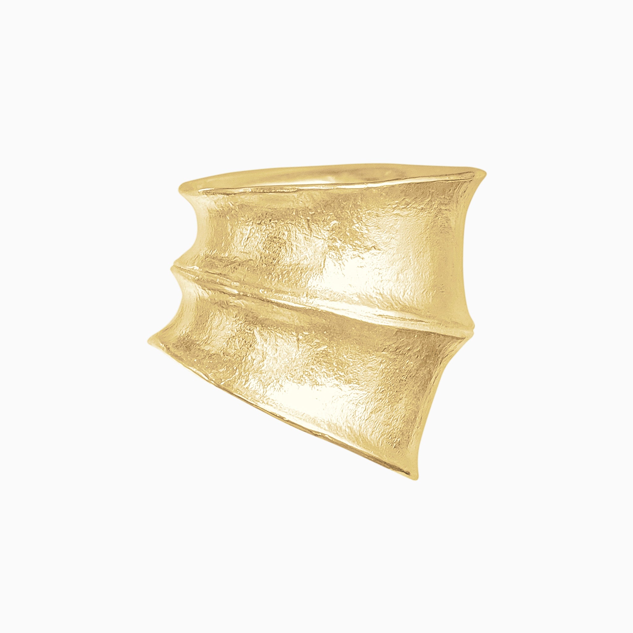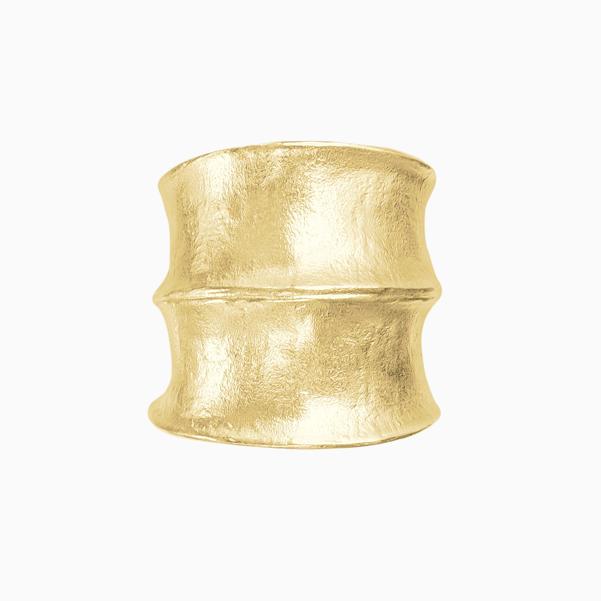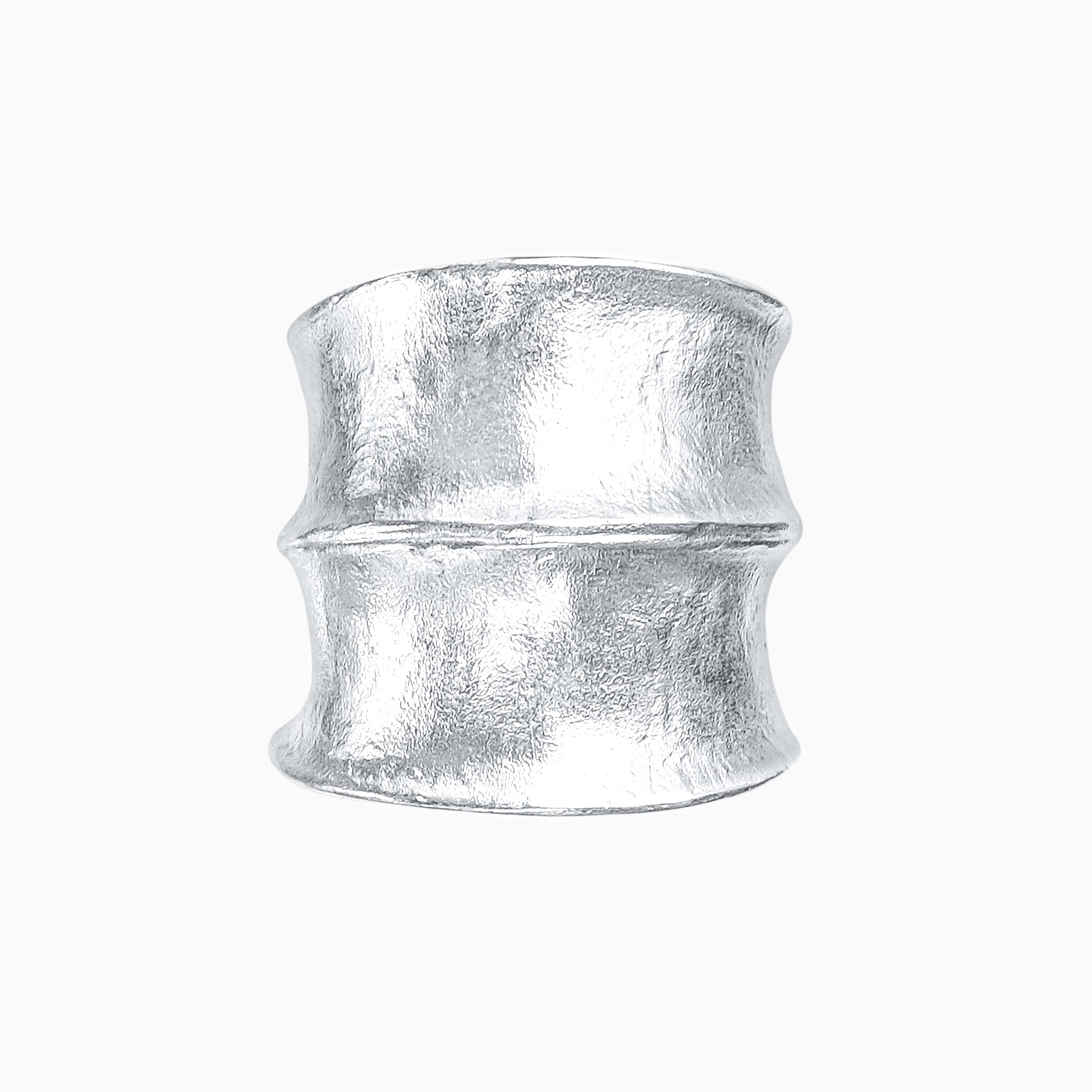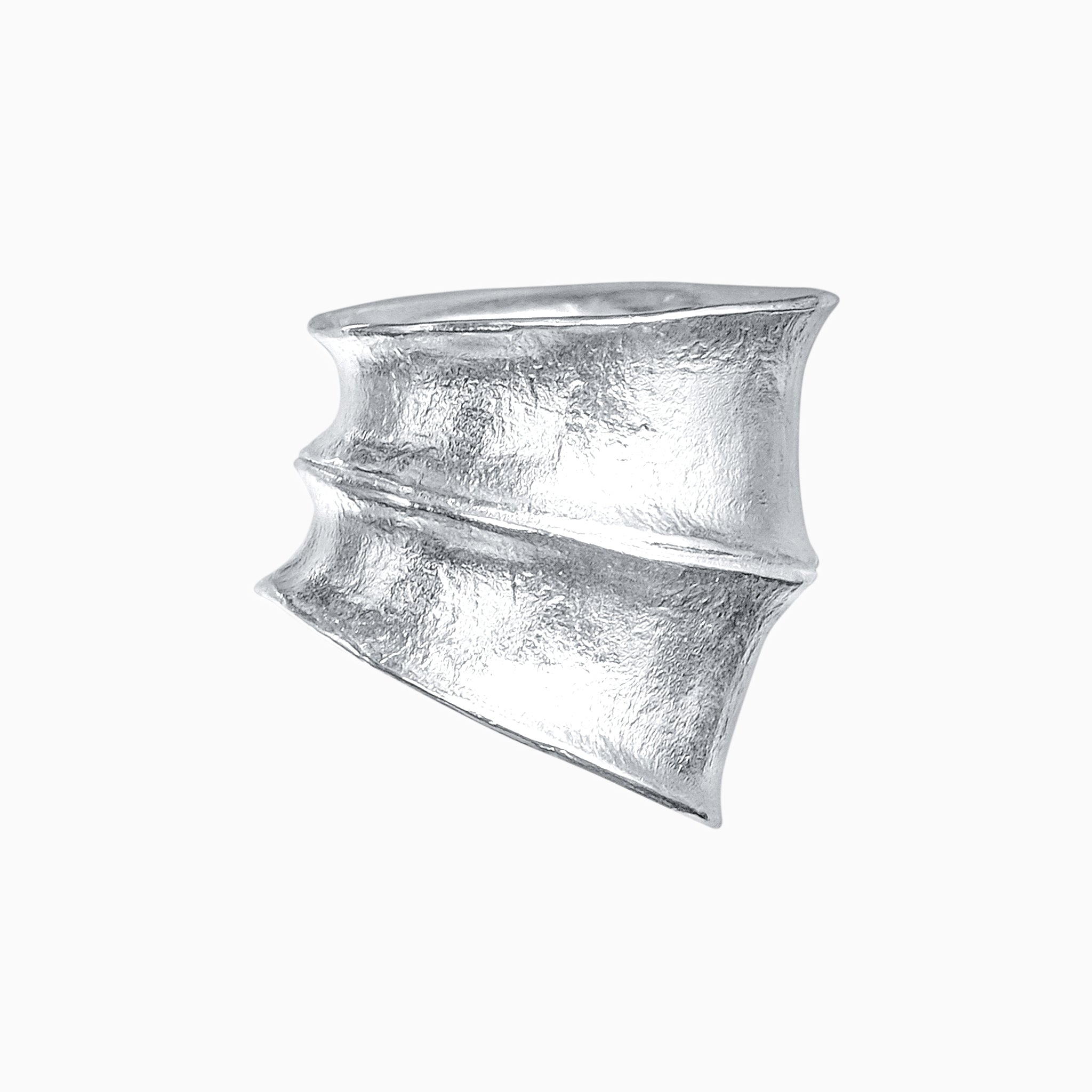 In silver or in gold, this ring is rather glorious. Inspired by ancient jewels, the design has a sculptural strength. The texture of the exterior contrasts with the highly polished interior. This jewel glides onto your finger. Sumptuous.